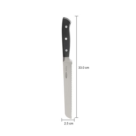 Faca para pão em aço inoxidável com cabo ergonômico com revestimento em ABS.