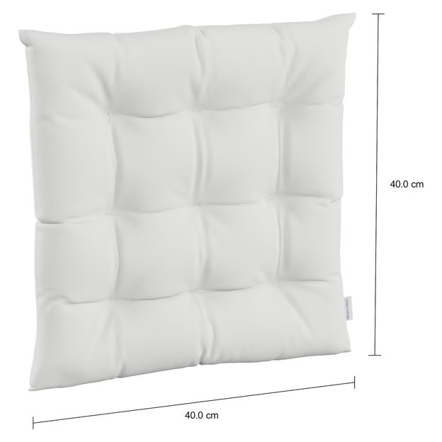 Almofada com enchimento em fibra 100% poliéster revestida com tecido 'aquatec' 68% algodão/32% poliéster com tratamento hidrorrepelente. Possui detalhes em capitonês.