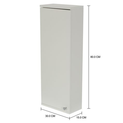 Gabinete superior em MDP (Medium Density Particleboard) revestido com laminado melamínico de baixa pressão e bordas em PVC. Possui 1 porta e 3 nichos com prateleiras reguláveis.