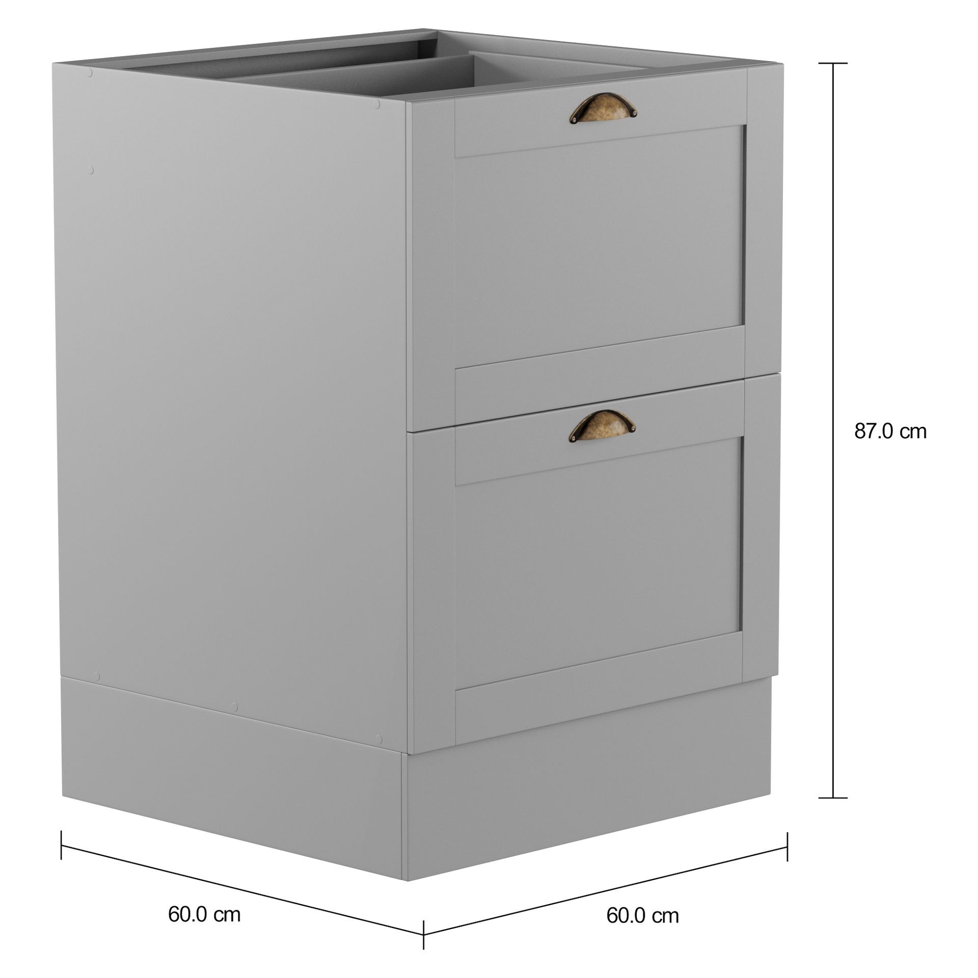 Os rodapés podem ser removidos para limpeza do piso. Para uso com o tampo da mesma linha (vendido separadamente). Carga máxima suportável: 20kg/tampo (quando composto), 3kg/gaveta menor, 10kg/gaveta maior; distribuídos uniformemente.