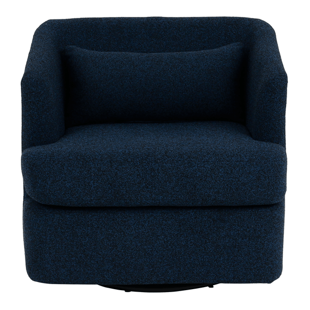 Poltrona giratória, com base em aço carbono com acabamento em pintura epóxi-pó e assento/encosto em compensado revestido com espuma (D28/assento e D24/encosto) e tecido tramado. Possui sapatas plásticas. Acompanha 1 almofada para o encosto.