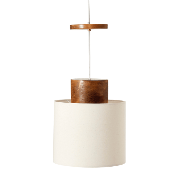 Cúpula com estrutura em aramado de aço com acabamento em pintura epóxi-pó revestida com acetato e tecido 100% algodão.Sistema de iluminação, 127/220V, em madeira maciça. Possui soquete e fio em PVC. Ideal para uso com cúpulas pendentes ou lâmpadas decorativas (vendidas separadamente).