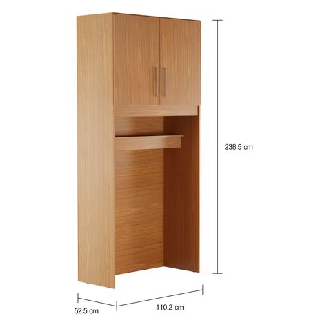 Guarda-roupa de solteiro, em MDP (Medium Density Particleboard) de 15 mm com acabamento em pintura por impressão, com bordas em PVC. Possui 2 portas, 2 nichos, 1 prateleira, 1 vão para uso com cama de solteiro e sapatas plásticas.