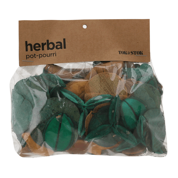 Pot-pourri, confeccionado artesanalmente utilizando sementes naturais, frutos lenhosos, folhas e fibras tingidos e essência de ervas.