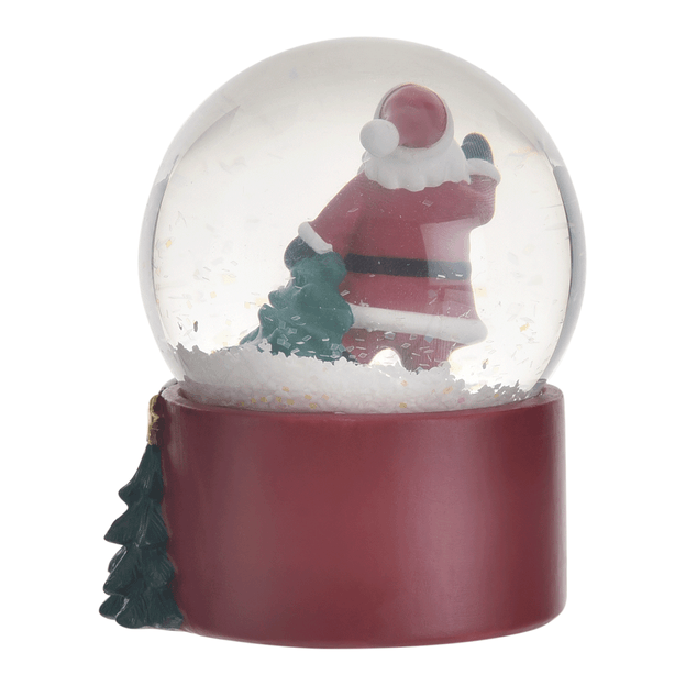Globo de neve em poliresina com acabamento em pintura, vidro e sistema de iluminação por LED. Para uso com 2 pilhas LR44 (inclusa).