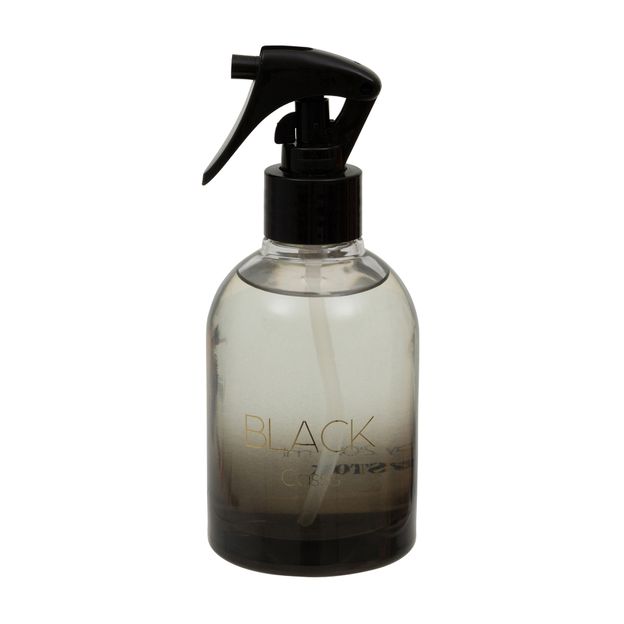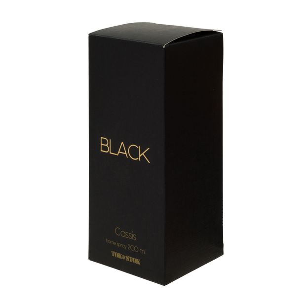 Home spray à base de essência de cassis. Acondicionado em embalagem de plástico com válvula.