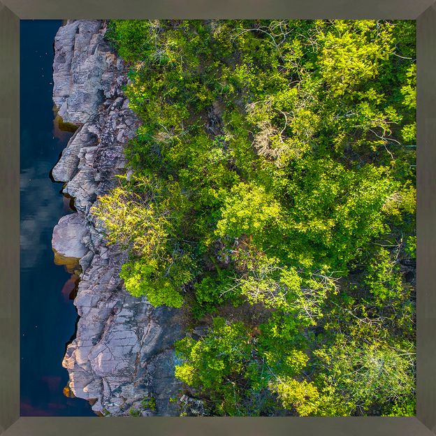 Quadro com moldura em madeira maciça (Pinus Elliottii), visor em vidro incolor e impressão digital em papel fotográfico.