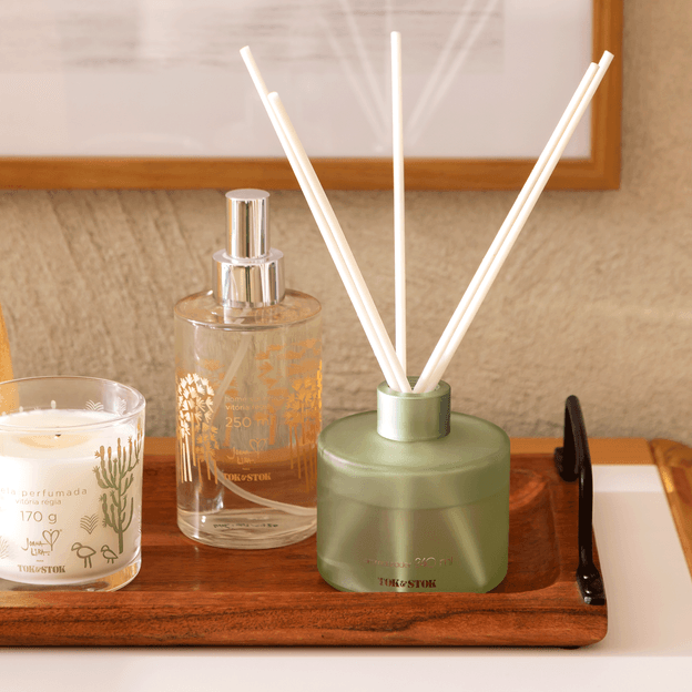 Inspirada nos delicados aromas e tons da natureza, a coleção Mon Jardin revela seu charme em três diferentes opções: Gardênia, Capim Limão e Vanilla.Escolha o seu favorito para torná-lo marca registrada da casa e tenha à disposição aromatizadores, águas perfumadas e velas (vendidos separadamente).O aromatizador de ambientes garante perfume delicado e promove a convidativa sensação de aconchego.