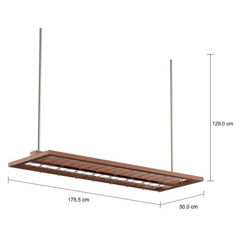 Acompanha componentes para fixação somente em estruturas de alvenaria. Os suportes devem ficar a 1,80 m de altura do piso; podendo ser instalados em cozinhas com pé direito de até 3 m. Variedades de madeira: Tauari e Eucalipto. Carga máxima: 15kg.