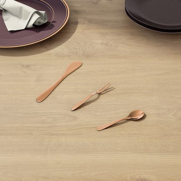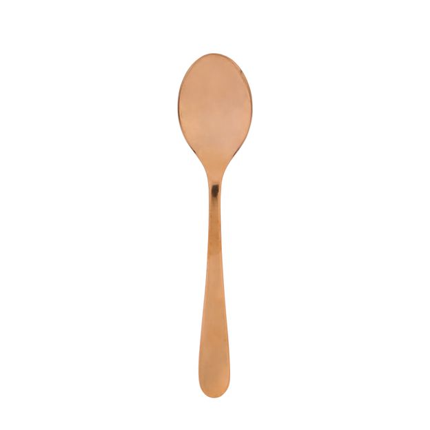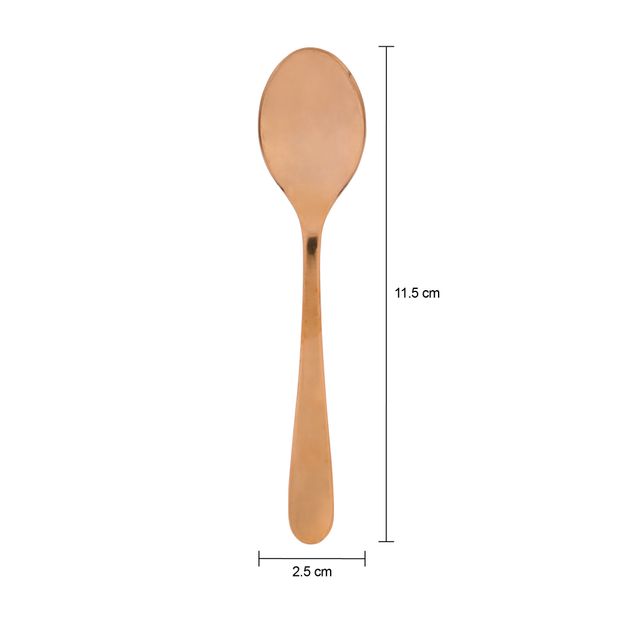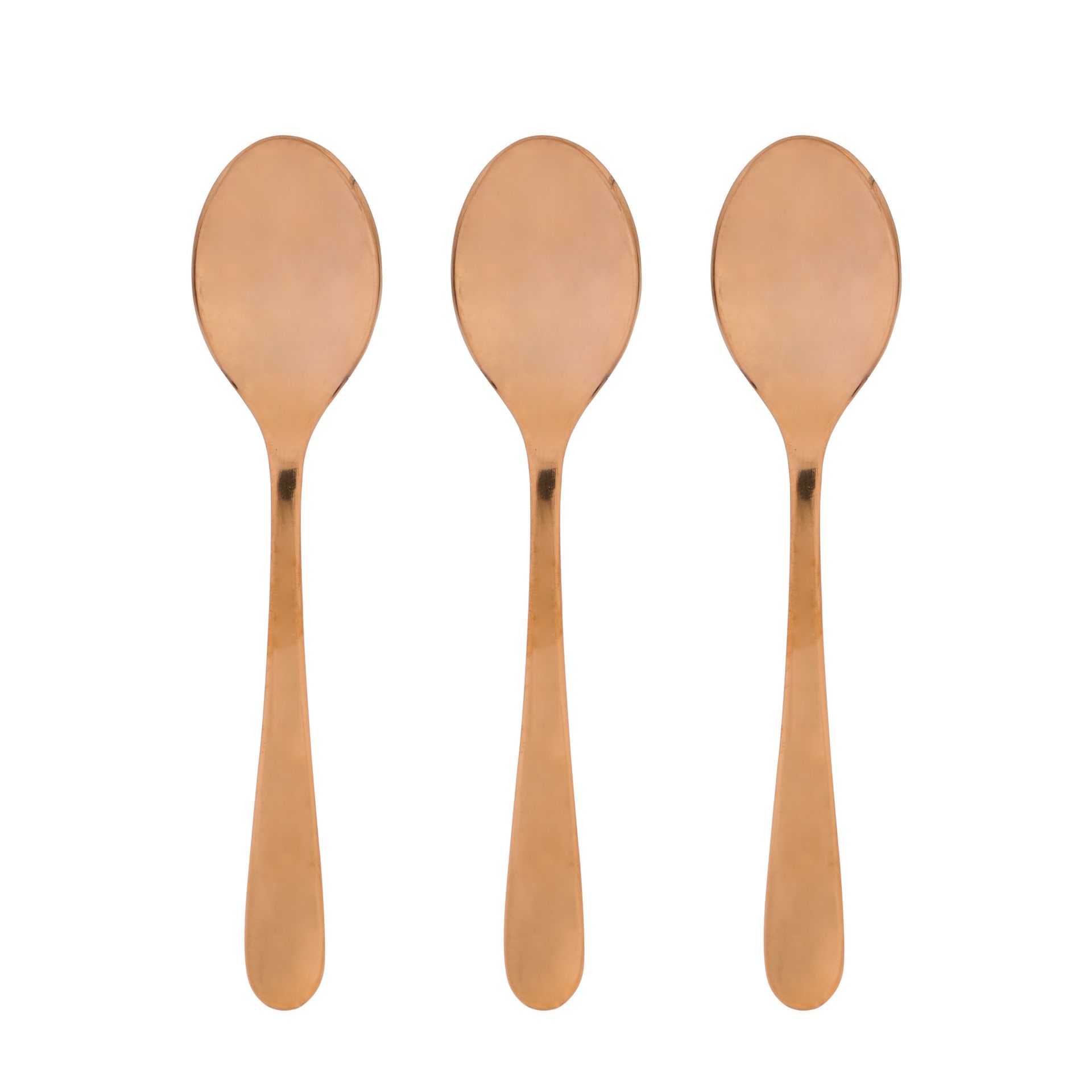 Jogo com 3 colheres para chá em aço inoxidável com acabamento em pintura metalizado.
