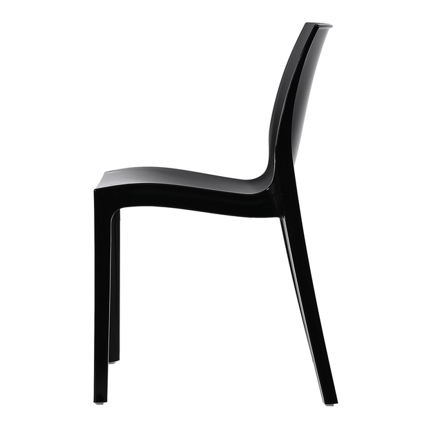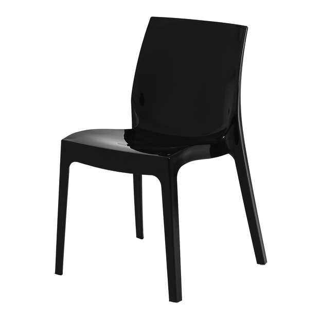 Cadeira, empilhável, em polipropileno com proteção contra radiação ultravioleta. Possui sapatas plásticas.