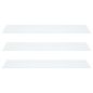Conjunto com 3 prateleiras, em vidro temperado 6 mm com acabamento em pintura por impressão vítrea. Para uso com base de estante da mesma linha (vendida separadamente).