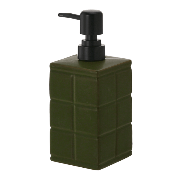 Kit para bancada, composto por: 1 porta-sabonete líquido em cerâmica com válvula e tampa em ABS, 1 saboneteira em cerâmica e 1 porta-escova/pasta em cerâmica.
