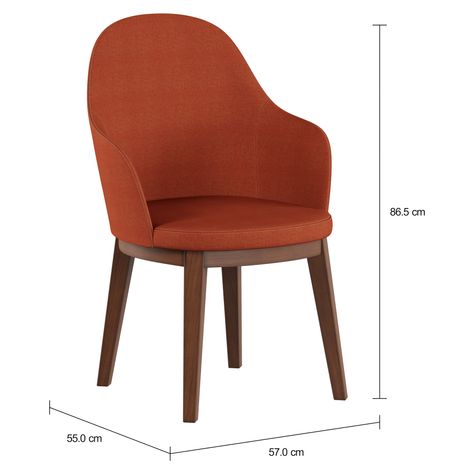 Cadeira com braços, com estrutura em madeira maciça de reflorestamento (Eucalipto) tingida com aplicação de verniz e assento/encosto em MDF e percintas elásticas revestidos com espuma (D45/assento e D23/encosto) e tecido 100% poliéster.