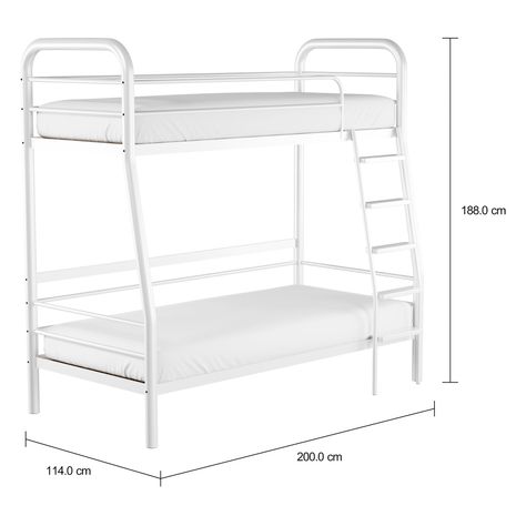 Para uso com colchões de 78 cm x 1,88 m x 17 cm na cama superior e 98 cm x 1,88 m x 17 cm na cama inferior (vendidos separadamentes). Carga máxima suportável: 90kg/por cama; distribuídos uniformemente.