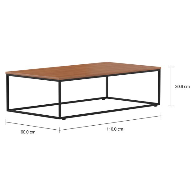 Base para mesa de centro, em perfil de aço com acabamento em pintura epóxi-pó. Possui sapatas plásticas para pequenos desníveis de piso.Tampo para base de mesa de centro, em MDP (Medium Density Particleboard) laminado (Jequitibá) e tingido com acabamento em verniz. Para o uso com base da mesma linha (vendida separadamente).