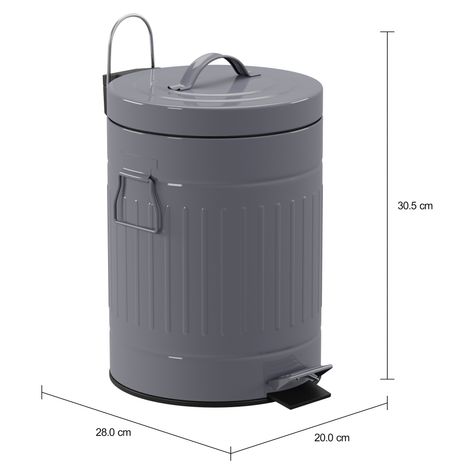 Lixeira em aço inoxidável com acabamento em pintura epóxi-pó. Possui pedal e cesto interno removível em polipropileno com alça.
