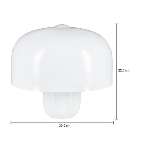 Luminária de mesa, 127/220V, em chapa de alumínio com acabamento em pintura epóxi-pó. Para uso com lâmpada fluorescente, máx. 15W ou LED, máx. 8W 127/220V com soquete rosca E27 (não inclusa). Possui fio com comprimento de 1,30 m de extensão.