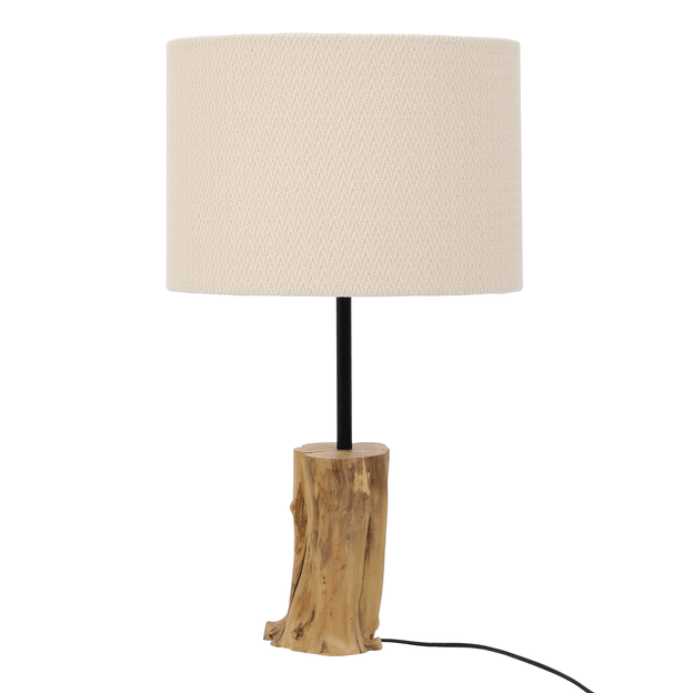 Base para luminária de mesa, 127/220V, confeccionada artesanalmente em madeira (Café) com acabamento em verniz selador e tratamento contra insetos. Para uso com lâmpada fluorescente, máx. 15W ou LED, máx. 8W 127/220V com soquete rosca E27 (não inclusa).Cúpula com estrutura em aramado de aço com acabamento em pintura epóxi-pó revestida com acetato e tecido 100% algodão.