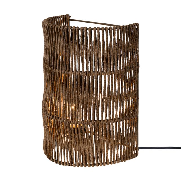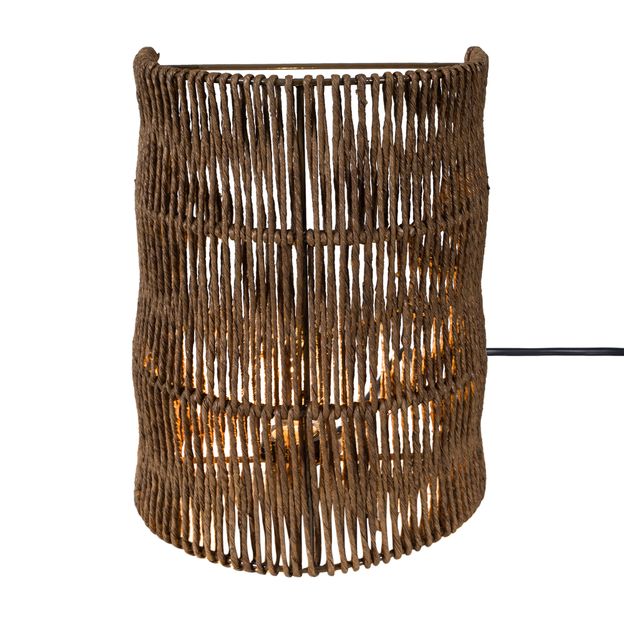 Luminária de parede, confeccionada artesanalmente em corda de papel.