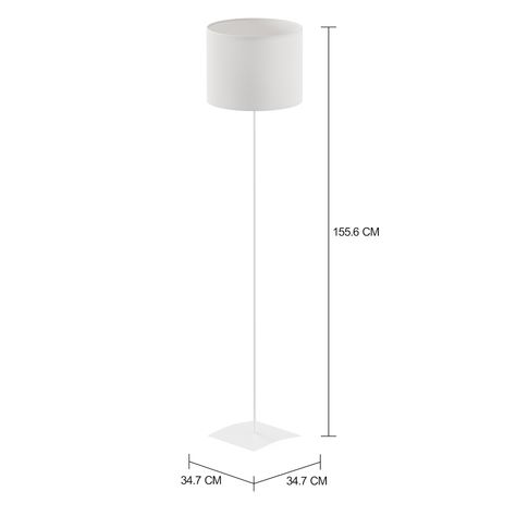 Base de luminária de piso, 127/220V, em chapa e tubo de aço com acabamento em pintura epóxi-pó com aplicação de verniz poliuretano. Possui soquete rosca E27.Cúpula com estrutura em aramado de aço com acabamento em pintura epóxi-pó revestida com acetato e tecido 100% algodão.