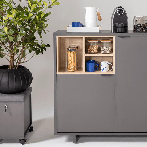 Contemporânea e assinada pela equipe T S Design, a linha Aleta é composta por móveis modulares com soluções inteligentes que atendem às necessidades de diversos espaços, sejam eles residenciais ou corporativos, e coworkings com visual urbano. Este armário médio é desenvolvido em MDP de 25 mm revestido com laminado melamínico de baixa pressão (BP) e bordas em PVC; matérias-primas e acabamentos que atestam sua resistência e durabilidade; atributos indispensáveis para o dia a dia. Já as sapatas plásticas reguláveis impedem que seu piso sofra riscos durante o manuseio. Compacto, ele possui 2 portas com puxadores em chapa de aço com pintura epóxi-pó e 8 nichos, sendo 3 abertos que juntos, permitem guardar acessórios e materiais de trabalho e o que mais você precisar; deixando-os sempre organizados. Já o tampo pode servir de apoio para objetos decorativos, bebidas ou até mesmo como bancada para o cantinho do café. Uma composição com os demais itens da linha (vendidos separadamente) garantirá um décor ainda mais completo e, ao mesmo tempo, um ambiente funcional.