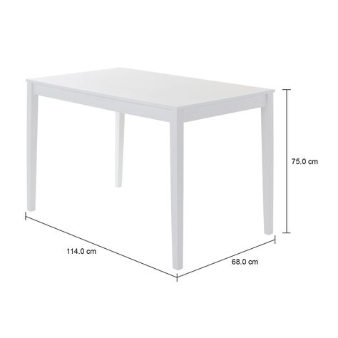 Mesa com pés em madeira maciça de reflorestamento (Pinus Elliottii) e tampo em MDF (Medium Density Fiberboard) de 15 mm com acabamento em pintura.