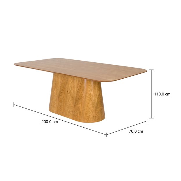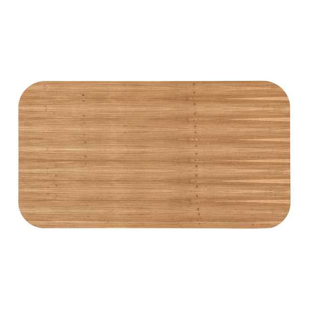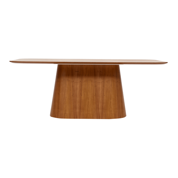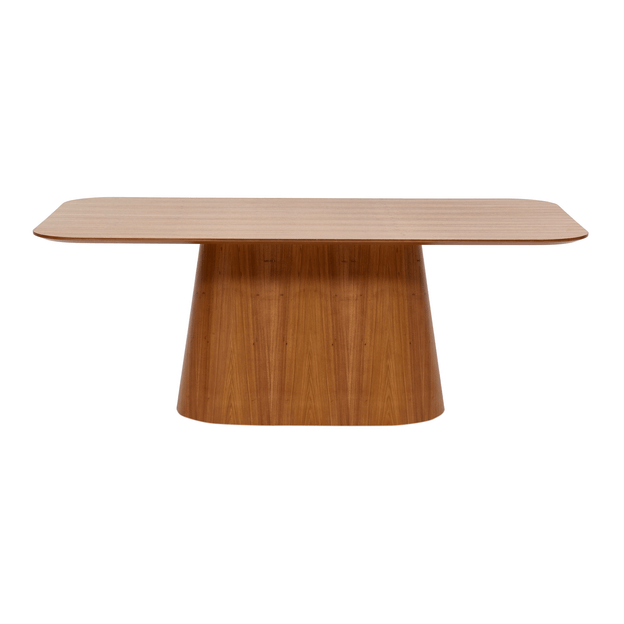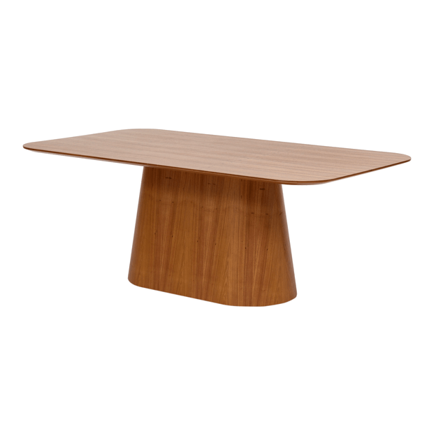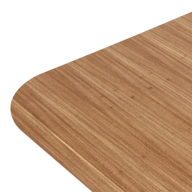 Mesa com base em compensado e tampo em MDF (Medium Density Fiberboard) de 25 mm revestidos com lâmina de madeira maciça (Freijó) tingida com aplicação de verniz. Possui sapatas plásticas.