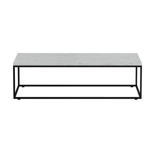 Base para mesa de centro, em perfil de aço com acabamento em pintura epóxi-pó. Possui sapatas plásticas para pequenos desníveis de piso.Tampo para base de mesa de centro, em mármore nacional (Branco Espírito Santo) com acabamento em hidro-óleo; agente repelente impermeabilizante. Para uso com base da mesma linha (vendida separadamente).