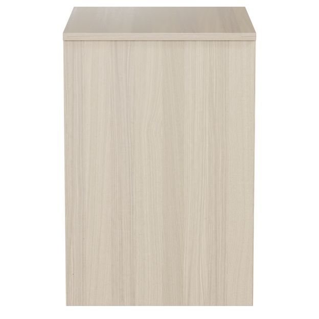 Mesa de cabceira em MDF (Medium Density Fiberboard) com acabamento em pintura por impressão. Possui 3 gavetas com corrediças metálicas e sapatas plásticas.