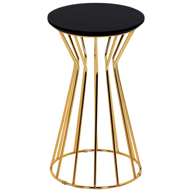 Mesa lateral com estrutura em perfil de aço maciço com acabamento em banho dourado e tampo em MDF (Medium Density Fiberboard) com acabamento em pintura. Possui sapatas plásticas.