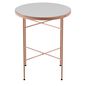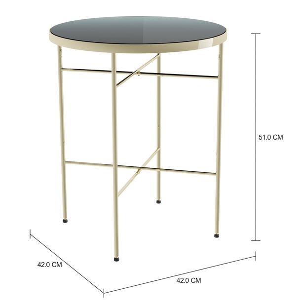 Mesa lateral com estrutura em tubo e chapa de aço com acabamento em pintura epóxi-pó e tampo em vidro temperado pintado. Possui sapatas plásticas.