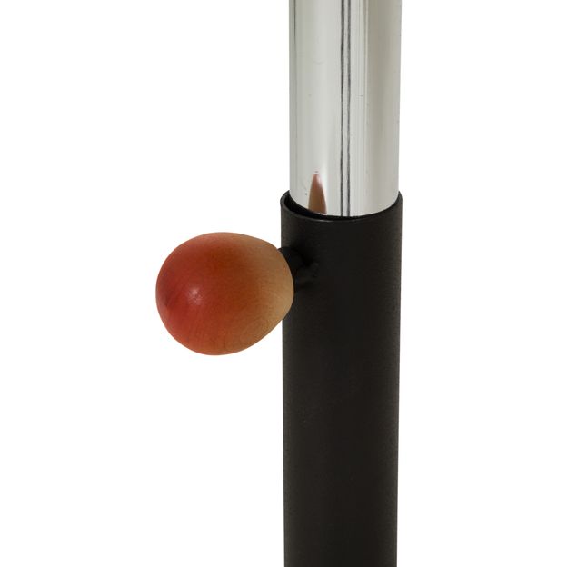 Mesa lateral com tampo e base em chapa de aço com acabamento em pintura epóxi-pó. Possui regulagem de altura.