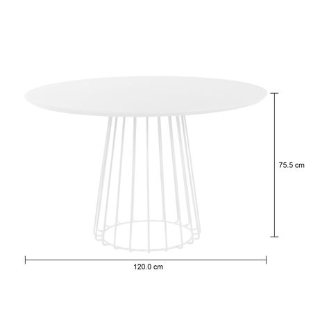 Mesa com base em aramado de aço com acabamento em pintura eletrostática e tampo em MDF (Medium Density Fiberboard) de 25 mm com acabamento em pintura poliuretânica. Possui sapatas plásticas.