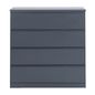 Cômoda em MDP (Medium Density Particleboard) de 15 mm e 25 mm com acabamento em pintura. Possui 4 gavetas com corrediças telescópicas e sapatas plásticas.
