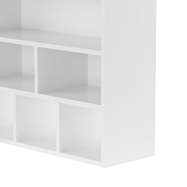 Módulo superior em MDF (Medium Density Fiberboard) com acabamento em pintura por impressão. Possui 1 porta e 9 nichos, sendo 1 com prateleira móvel.