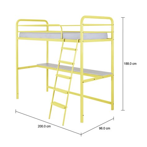 Escrivaninha em MDP (Medium Density Particleboard) de 7,4 mm revestido com laminado melamínico de baixa pressão. Para uso com sistema de quarto integrado (vendido separadamente).Sistema de quarto integrado, em tubo de aço com acabamento em pintura epóxi-pó. Possui estrado em MDP (Medium Density Particleboard) e escada com 5 degraus.