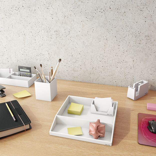 Design que faz referência ao geométrico e cores que conferem personalidade na hora de compor sua mesa de estudos ou trabalho.Excelente opção para manter esse ambiente organizado e permitir que o trabalho flua de maneira inteligente, a linha Aesthetic é aquele básico indispensável para diferentes estilos de escritórios.O organizador de mesa é ideal para alocar grampeador, blocos de anotação, régua, tesoura, entre outros itens.