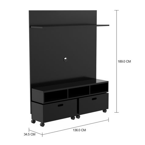 Caixa organizadora em MDP (Medium Density Particleboard) com acabamento em pintura por impressão e bordas em PVC. Possui recorte usinado para manuseio e rodizíos plásticos. Para uso com painel TV da mesma linha (vendido separadamente).Painel para TV, em MDP (Medium Density Particleboard) com acabamento em pintura por impressão e bordas em PVC. Possui 3 nichos, 1 prateleira e passa-fios.