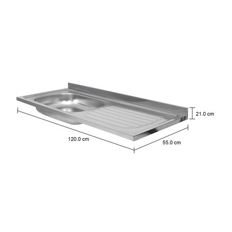 Pia, com cuba à esquerda, em aço inoxidável com acabamento acetinado. Acompanha válvula de 3 1/2'. Para uso com módulos inferiores da mesma linha (vendidos separadamente).