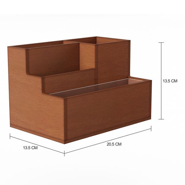 Porta-objetos em laminado (Curupixa) e MDF (Medium Density Fiberboard). Possui compartimento interno em acrílico para plantio.