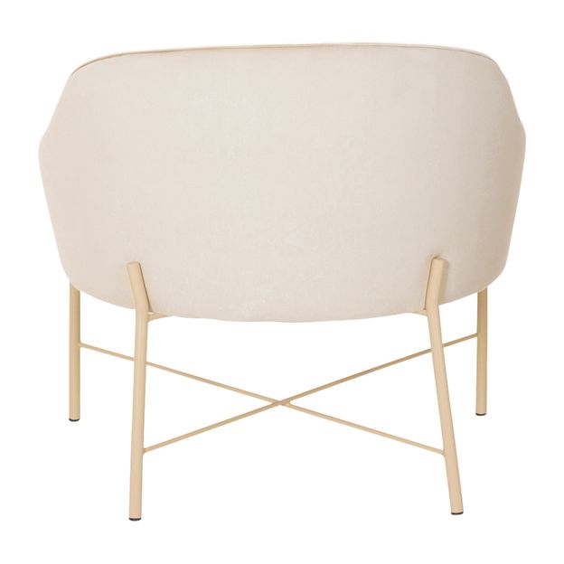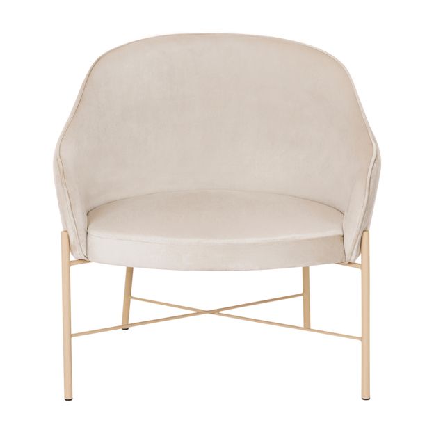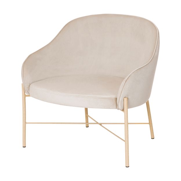 Poltrona com estrutura em tubo de aço carbono com acabamento em pintura epóxi-pó e assento/encosto em compensado de madeira maciça (Eucalipto) revestido com espuma (D28/assento e D18/encosto) e tecido 100% poliéster, tipo veludo. Possui sapatas plásticas.