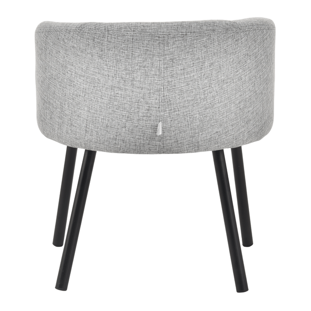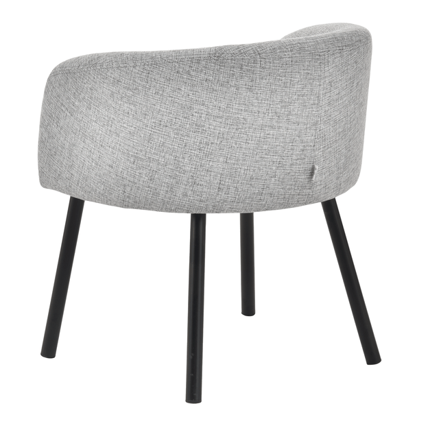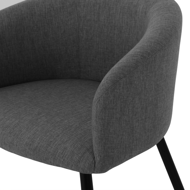 Poltrona com estrutura em tubo de aço carbono com acabamento em pintura epóxi-pó, revestido com espuma (D26/assento e D23/encosto) e tecido tramado 73% polipropileno/27% poliéster. Possui sapatas plásticas.