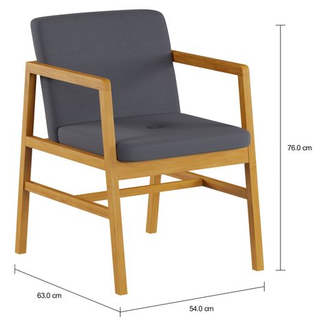 Poltrona com estrutura em madeira maciça de reflorestamento (Pinus Elliottii) tingida com aplicação de verniz, espuma de poliuretano (D26) e tecido eco-friendly 70% algodão/30% Pet reciclado. Possui detalhe em botonê no assento.