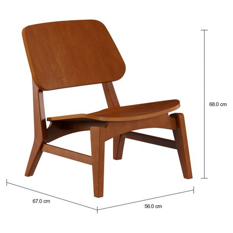 Poltrona com estrutura em madeira maciça (Tauari) e assento/encosto em MDF multilaminado revestido com lâmina natural (Tauari), tingidos, com aplicação de verniz.