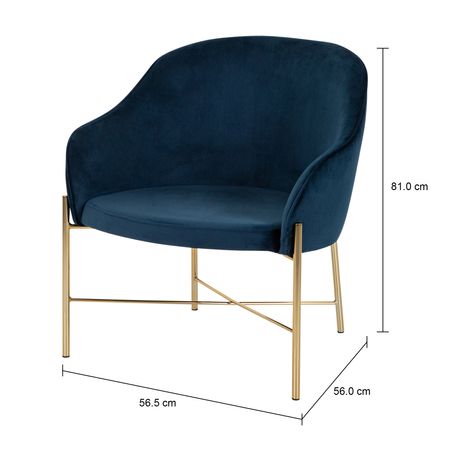 Poltrona com estrutura em tubo de aço carbono com acabamento em pintura epóxi-pó e assento/encosto em compensado de madeira maciça (Eucalipto) revestido com espuma (D28/assento e D18/encosto) e tecido 100% poliéster, tipo veludo. Possui sapatas plásticas.