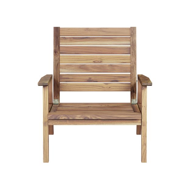 Poltrona reclinável em 2 posições, em madeira maciça (Teca) com acabamento tingidor impermeabilizante, tipo stain, à base de água com ação inseticida e fungicida.