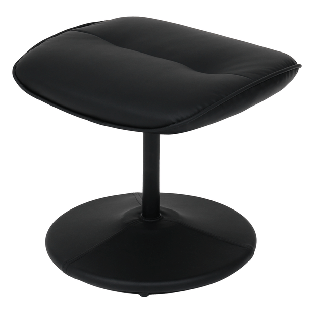 Poltrona giratória, com base em tubo de aço e estrutura em compensado multilaminado com espuma (D24) e revestimento sintético PVC. Possui encosto reclinável com ajuste de regulagem e sapatas plásticas. Acompanha puff.