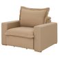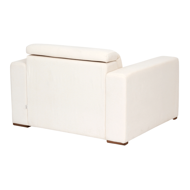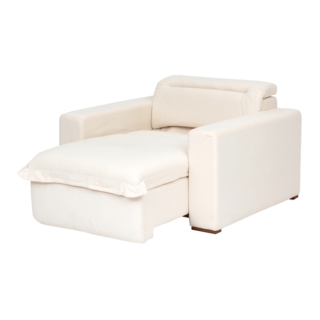 Poltrona com estrutura em madeira maciça reflorestada (Eucalipto), molas e percintas elásticas revestidas com espuma (D28 soft, D23 soft e D20) e tecido sarja 100% algodão. Possui assento extensível/retrátil.