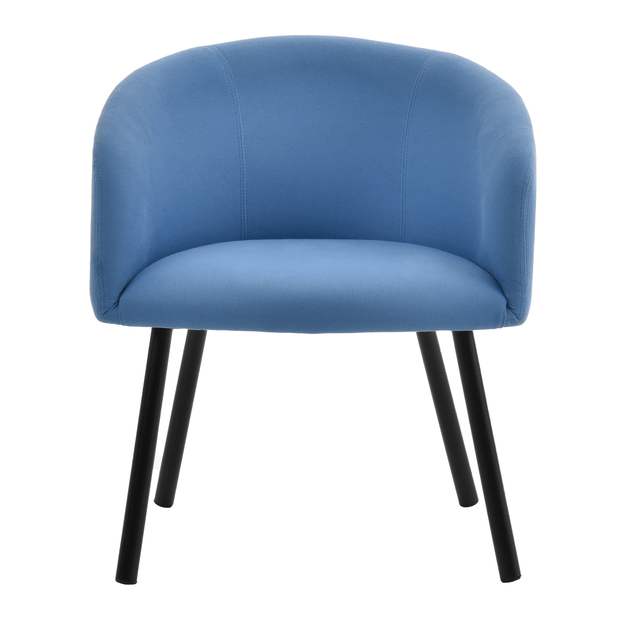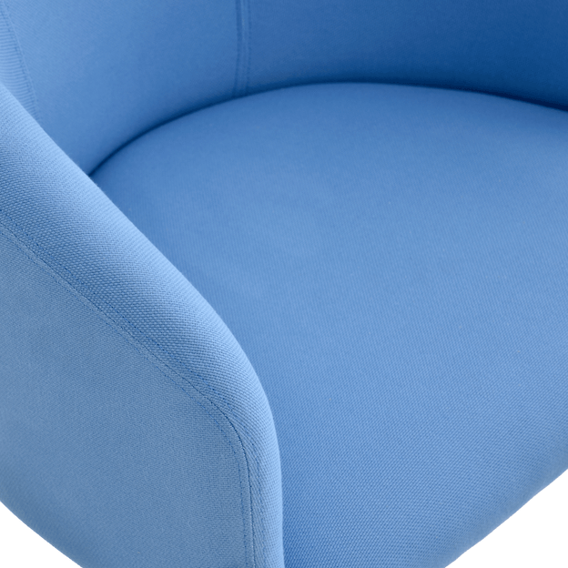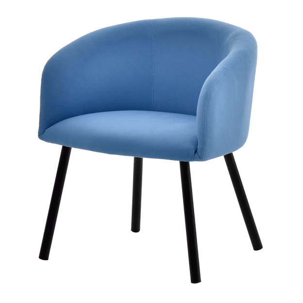 Poltrona com pés em tubo de aço carbono com acabamento em pintura epóxi-pó, revestido com espuma (D26/assento e D23/encosto) e tecido plano 100% algodão. Possui sapatas plásticas.